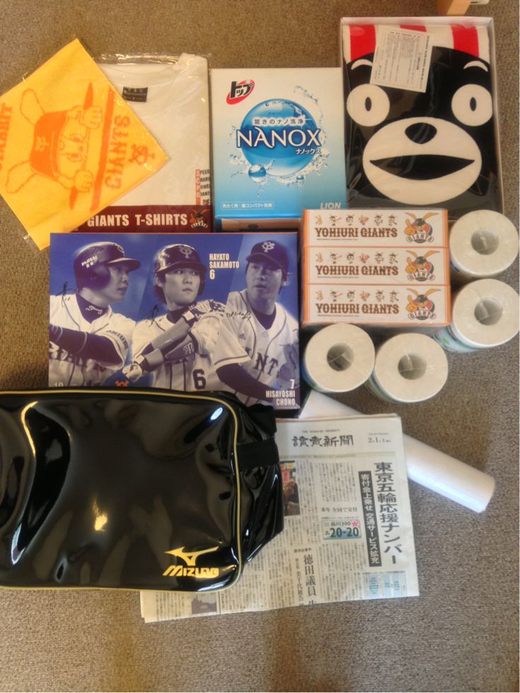 ハンカチ、Tシャツ、洗剤セット、バスタオル2枚(くまもん、ジャイアンツ)